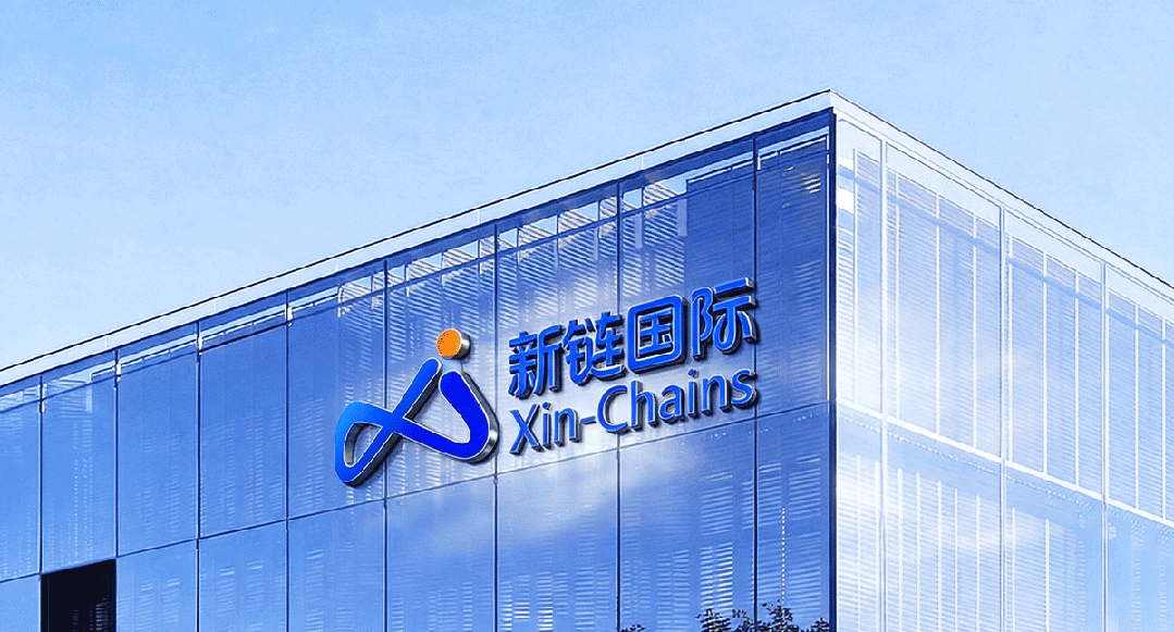 新链国际全新品牌标识,融合了物流速度、科技质感与全球视野: